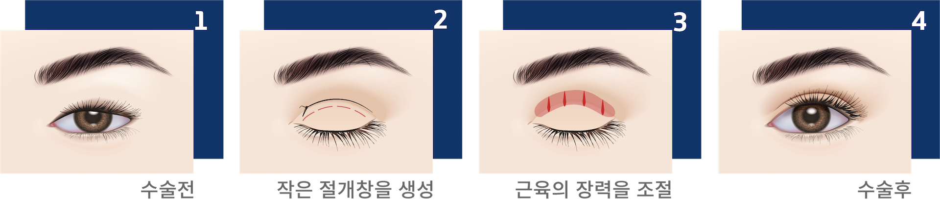 환자의 눈 상태에 따라 절개식 혹은 비절개식으로 차이를 두어 눈매 교정술을 시행하게 됩니다.