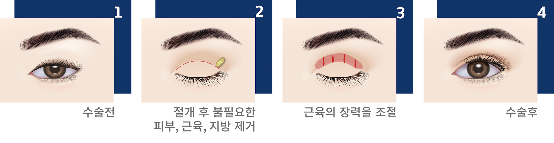 • 눈 뜨는 근육의 힘을 조절하여 보다 시원하고 또렷한 눈매를 만들 수 있습니다.